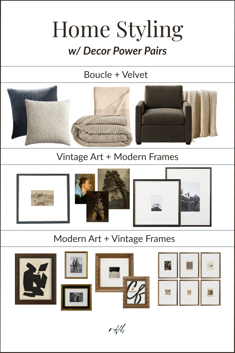 I call them "power pairs", classic home decor combinations that just work. Whether you're restyling a shelf, refreshing your living room, or starting from scratch, these pairings will give your space that collected, designer feel without overthinking it.