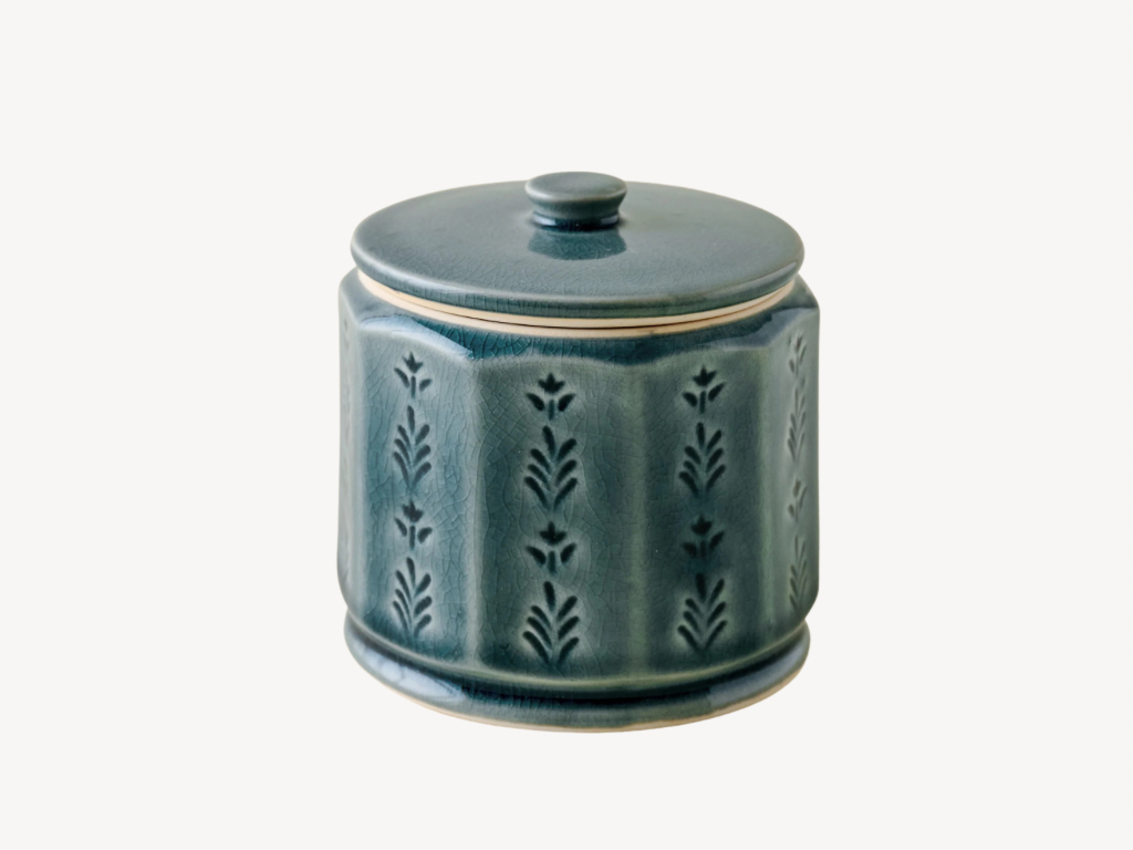 Watertight storage for the kitchen, or as a decorative piece on your living room built-ins, these ceramic canisters had the perfect pop of blue.
