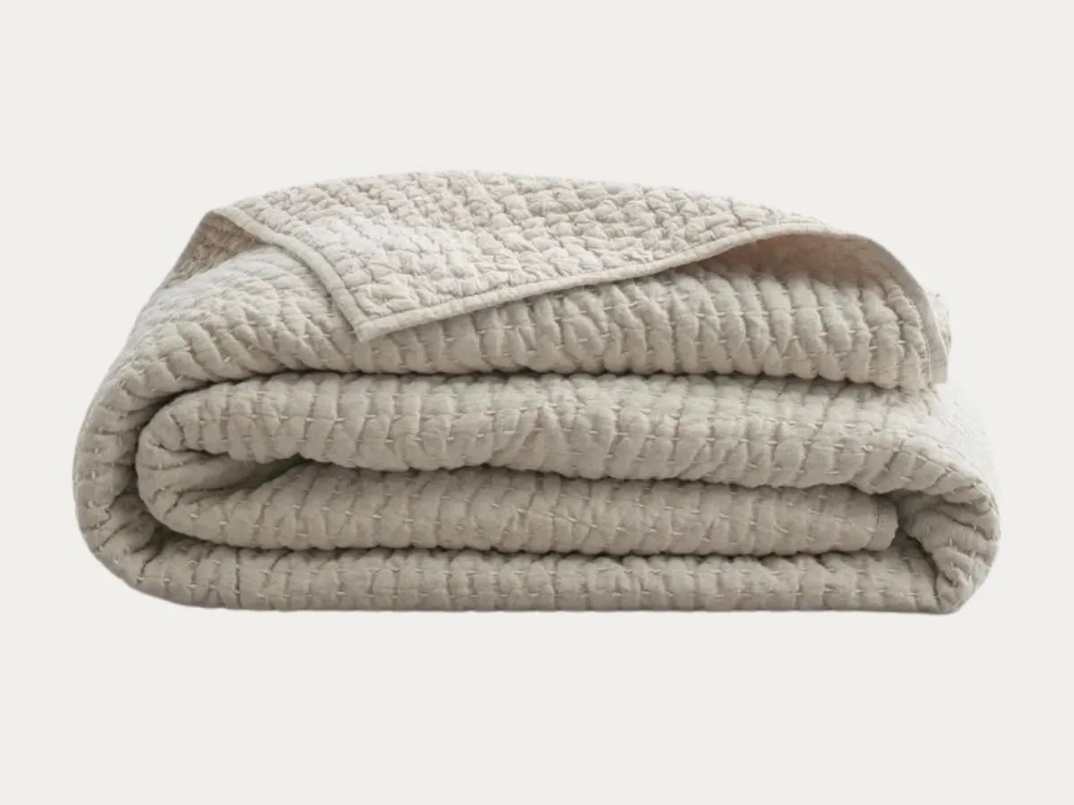Quince, European Linen Cotton Stitch Quilt in Natural