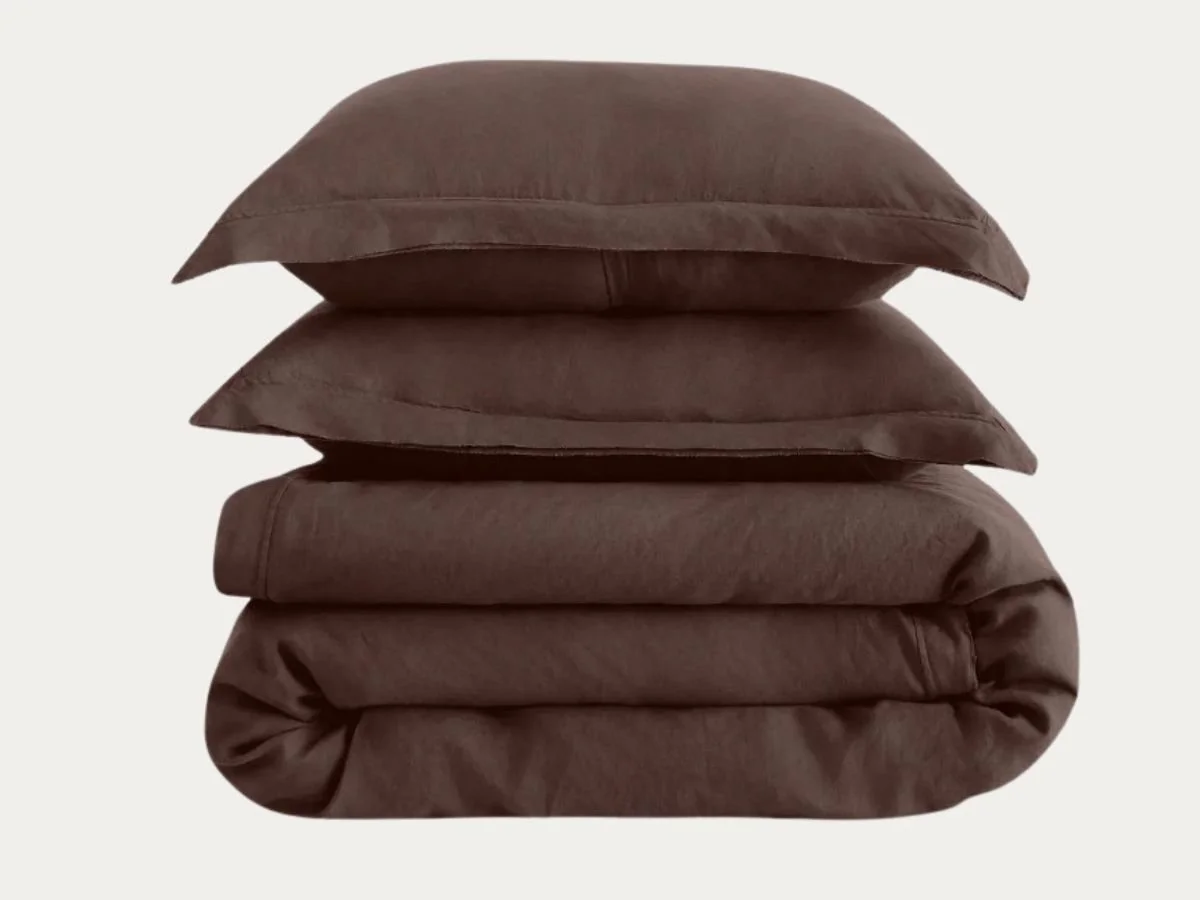 Quince, European Linen Double Flange Duvet Cover Set in Espresso