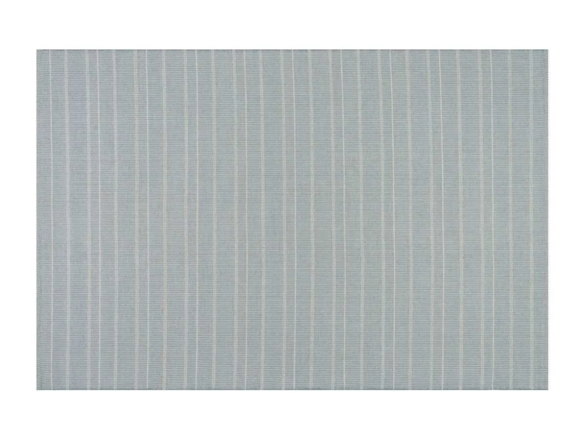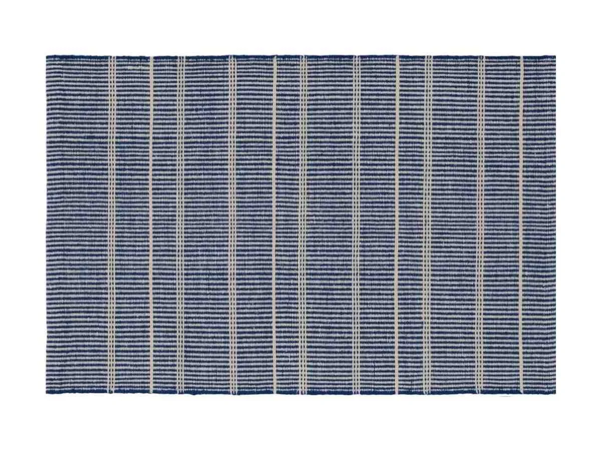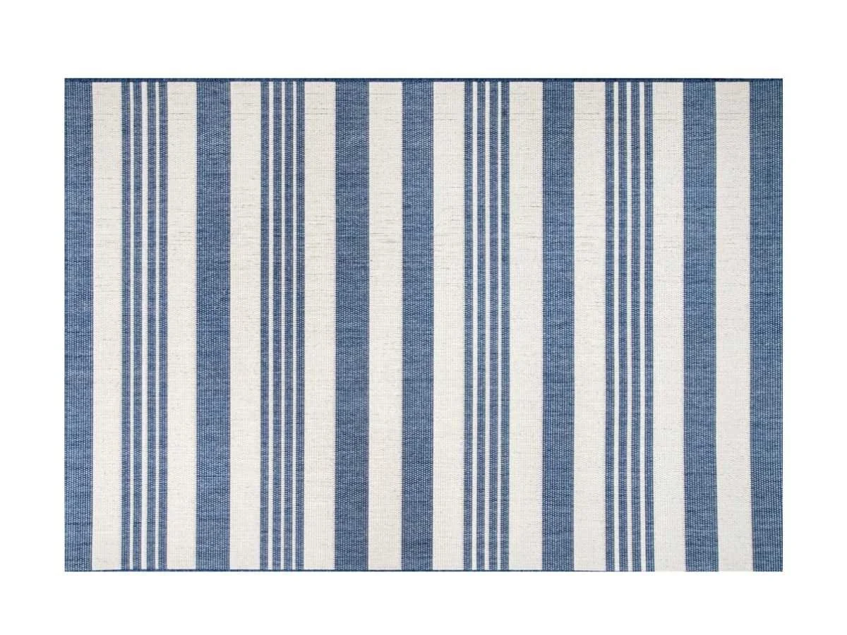 The Accent: Use blue and white striped outdoor rugs for small areas to draw the eye outward, creating the illusion of more floor space.