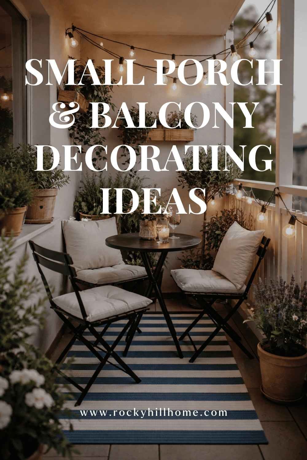 Blue and white coastal porch decor works especially well in tight spaces because it visually recedes. Cool colors like navy, slate, and crisp white make walls and railings feel further away than they actually are, so the whole outdoor area reads a little bigger.
